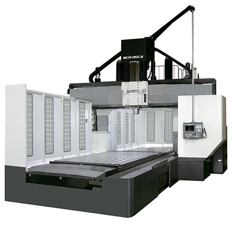 Our MCR-A5CII is a high-speed double column machining center with compact auto-loading/unloading attachments for true 5-sided machining in a compact footprint. The solid double column construction ensures greater rigidity and closer tolerances, making this machine well-suited for the efficient machining of general parts and rapid die/mold jobs.